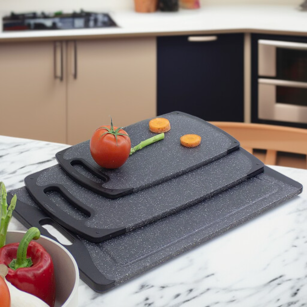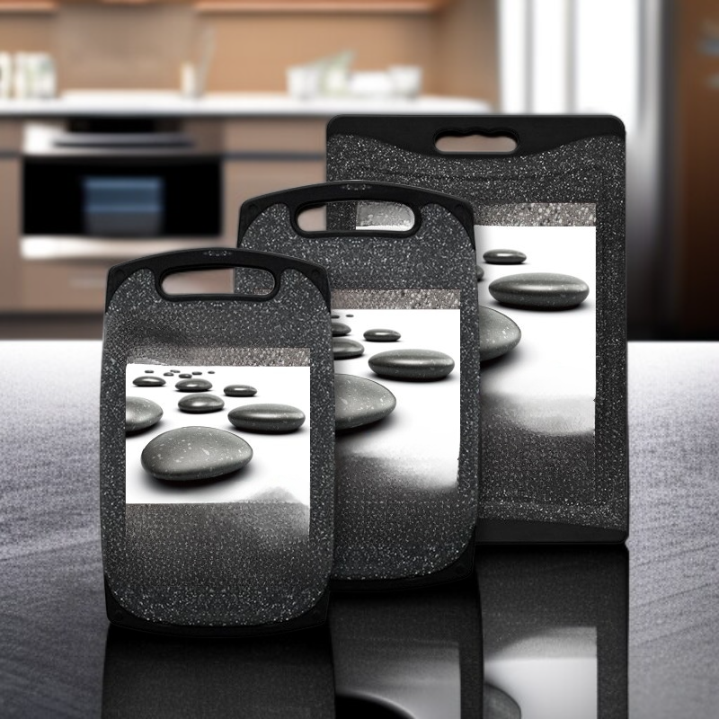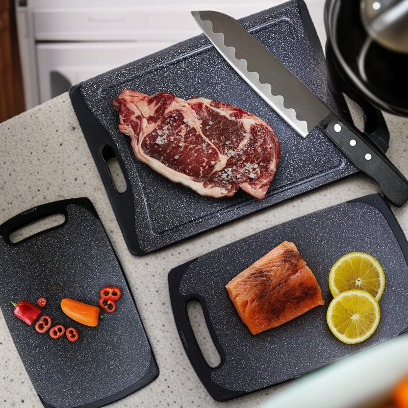PP菜板仿大理石三件套 可懸掛切菜切肉多功能砧板組