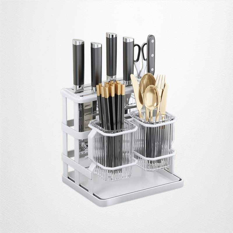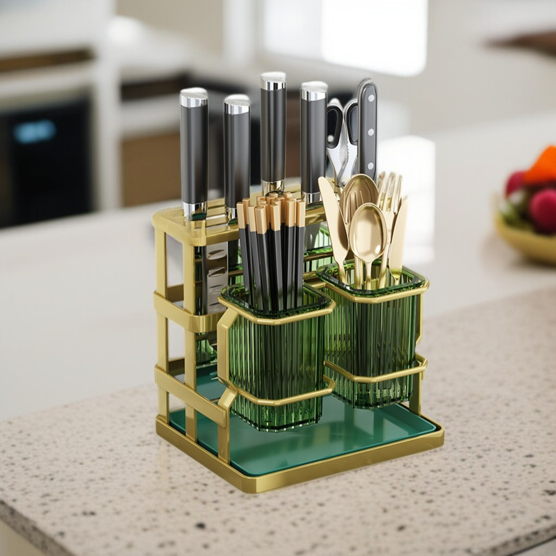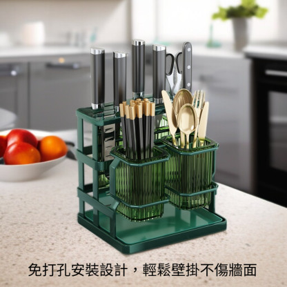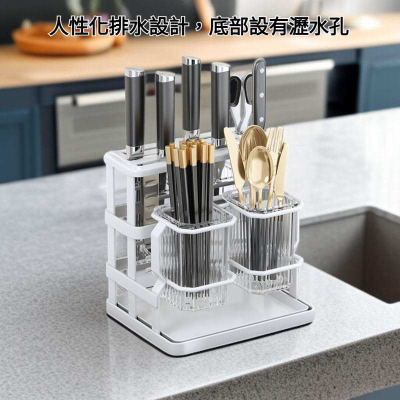 ● 多功能分區收納,筷子、刀具、餐具一架全搞定,保持廚房整潔有序,拿取方便省時。